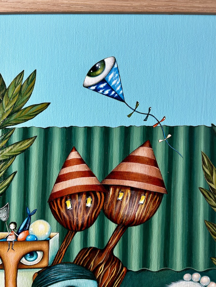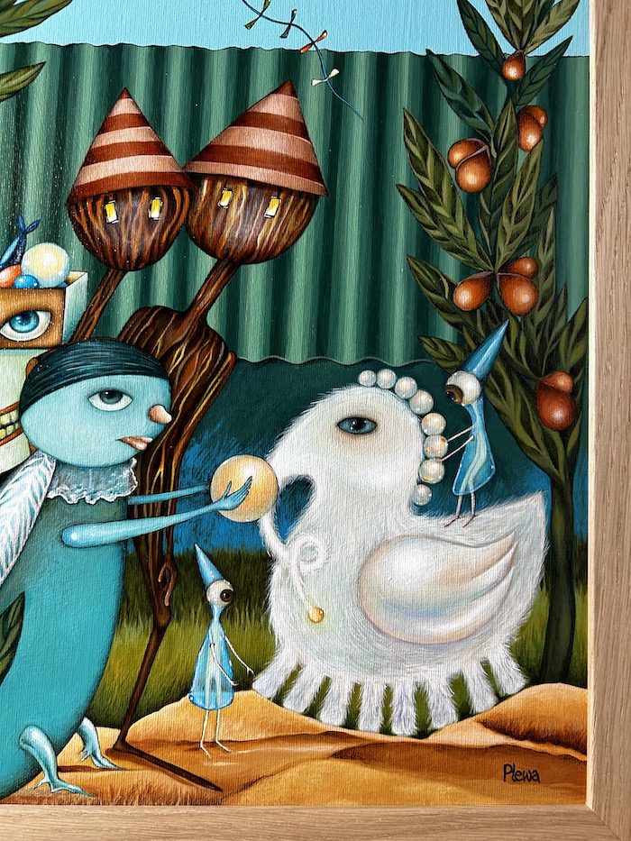 oprawiony w drewnianą ramę na wymiar (46,8x57cm)
